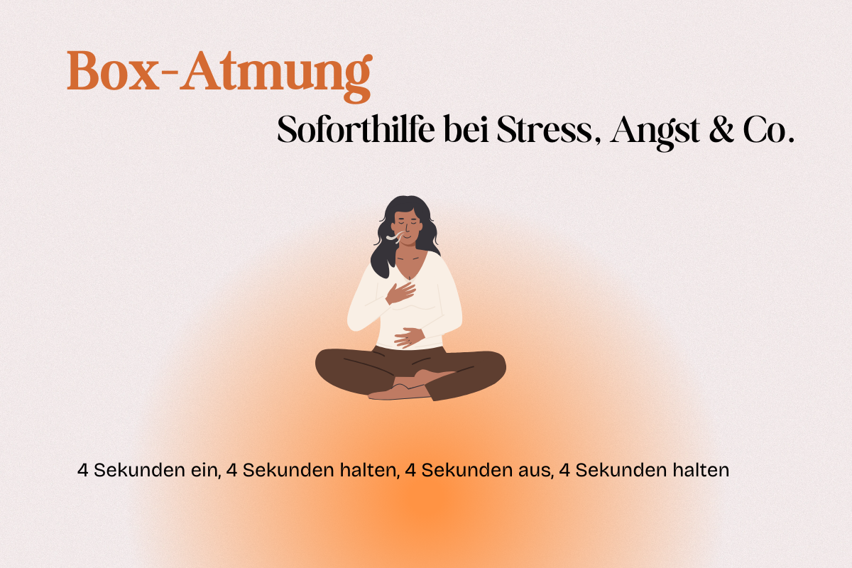 Aus diesem Grund stelle ich dir heute eine Methode vor, die dir als Soforthilfe zur Verfügung stehen kann: Die sogenannte Box-Atmung. Einfach zu erlernen, ohne Hilfsmittel durchführbar und ohne großen Zeitaufwand.